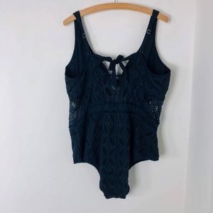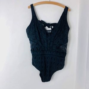 Rebecca Virtue Color Play 1-Piece Black Lace Suit