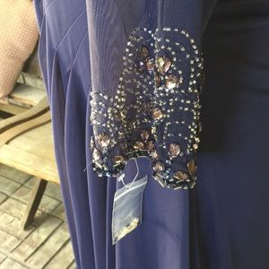 Gorgeous new dusty purple dress with A line silhouette and sweetheart illusion neckline. 3/4 illusion sleeves with beaded neck and sleeve detailing. Back zipper closure. Excellent new condition. Smoke free home. Bundle and save!!