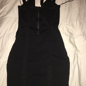 Black. Body con dress, sturdy fabric with a good amount of stretch. Medium. Lightly worn.