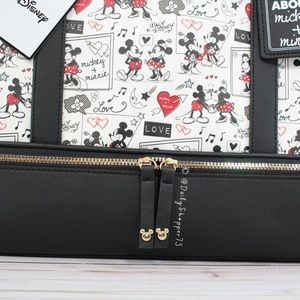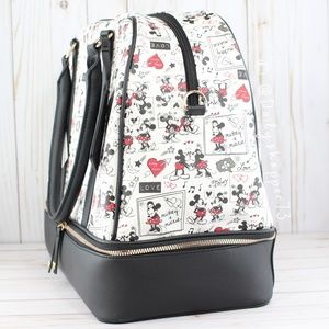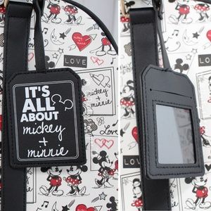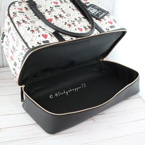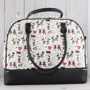 *11/17 RESTOCKED* This is a super cute, new with tags, Disney "It's all about Mickey + Minnie" weekender bag. Black, white, and red with gold hardware, and a vintage Mickey + Minnie pattern. The pattern includes various images of Mickey & Minnie as well as stars, moons, hearts, musical notes, and more! High quality, and full of details! This weekender bag includes an additional long adjustable strap and two large compartments. Disney x Primark exclusive.