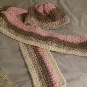 Knot scarf and bennie set , pink beige and white very soft no pulls. NWOT