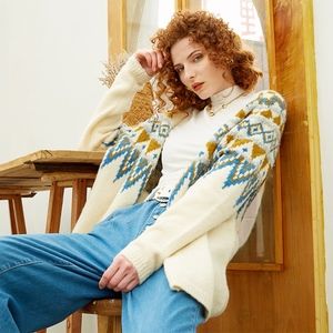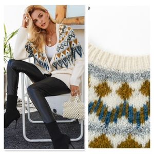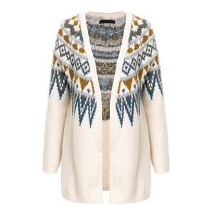 Tinsel Embellished Aztac Knit Open Cardigan