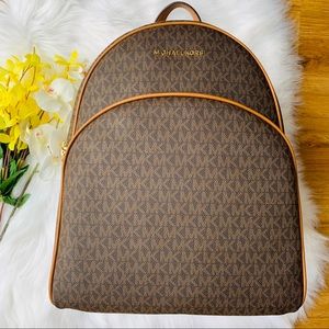 MICHAEL KORS LARGE ABBEY BROWN CANVAS BACKPACK