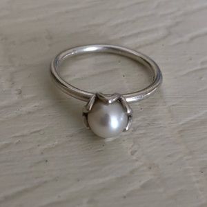Cultured elegance stackable ring. White pearl with silver band. Perfect condition! Size 7 (see ring chart)