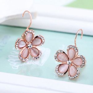 Pearlescent Pink/Rose Gold Earrings: Gorgeous pearlescent pink petals bordered with round cut clear crystals surround a larger, center crystal. Rose gold lever backs. Free of lead, nickel and cadmium. A top selling item!
