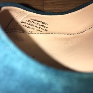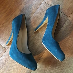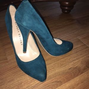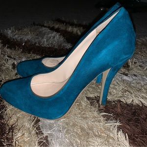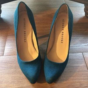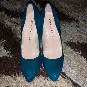 Audrey Brooke teal suede classic heels in newer condition. One small flaw on toe of left shoe as pictured. Barely noticeable in person. No other flaws. Suede is in excellent condition! Size 7.