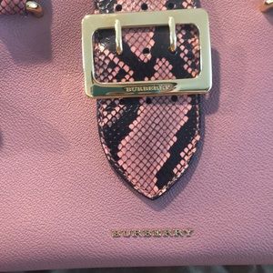 This is a Limited and rare 100% authentic Burberry Buckle Bag ... The dusty pink bag feature real pony calf skin leather & Python print ... shoulder strap that features signature Burberry check pattern, and a crossbody strap .. size is 10 x 5 x 8 . Perfect and ideal for everyday use .. Retail tag was cut off by Burberry and I ensure it’s never been used . Retails for 2600$ Dust bag included.. A must have for any Burberry fanatics... please feel free to ask more questions if needed.
