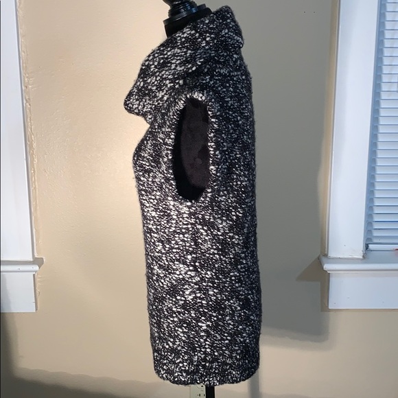 ANN TAYLOR black and white sleeveless sweater with a cowl neck. 31” from back of cowl neck to bottom of sweater.