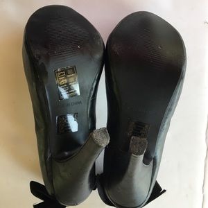 Forever 21 Black 5” Heels with ribbon bows in the back.