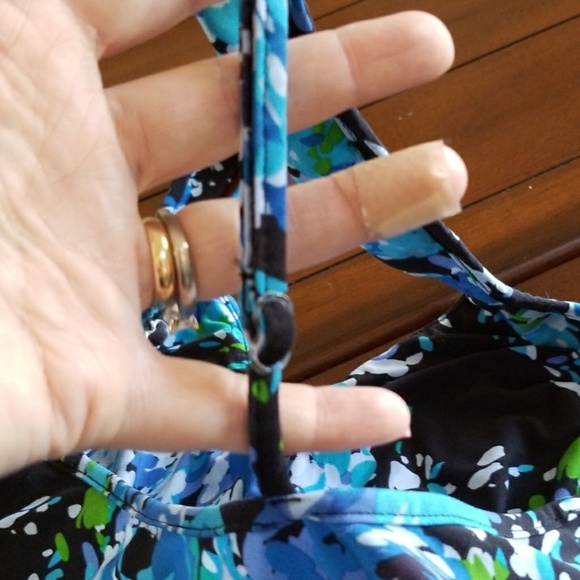 Gorgeous blue and green floral design nightie. Hardly worn, maybe once or twice. Excellent condition. Adjustable straps. Stretchy material. Chest 32" under breast area, length 31.5".