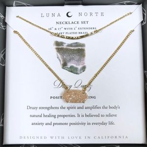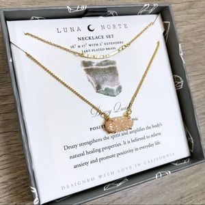Luna Norte pale pink/rose gold druzy quartz, positivity and healing necklace set. 14KT plated brass (gold color chain), 16” & 17” with 2” extenders. NIB and comes from smoke-free environment 🌸