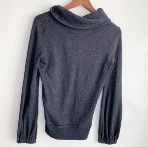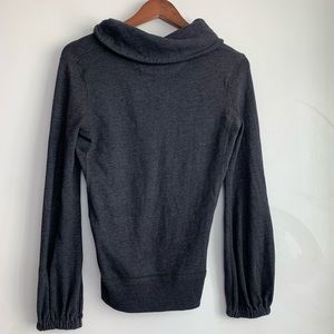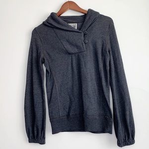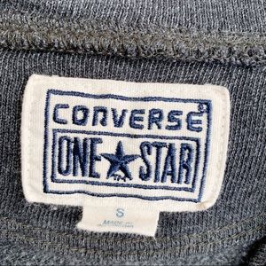 Converse One Star dark gray pullover, size S. Cuffed neckline with two button v-neck. Elastic sleeve cuffs. Ribbed bottom hemline. Slimming stitching details on front and back.