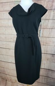 NWT CALVIN KLEIN Sz 6 Petite Black Belted Sheath Dress w Cap Sleeves