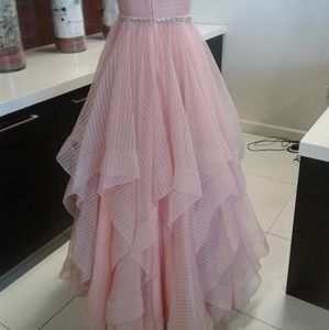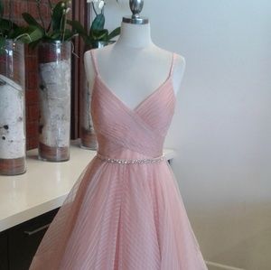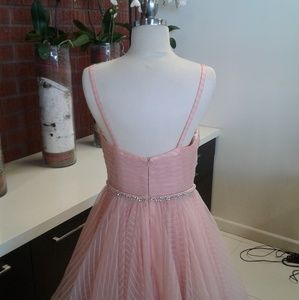 Embellished Belt, V-neck, Ruffled Ballgown, Spaghetti Straps
