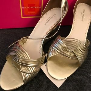 NIB—gold strappy dress shoes by Isaac mizrahi. Very classic and can go with literally everything. Never worn—size 10. A perfect neutral to amp up your look!!