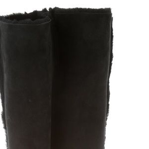 Manolo Blahnik black suede knee-high boots w shearling trim, so classy. Stacked wooden heels for all day comfort. Zip closure. 7.5 runs a tad narrow. Calf 13”, shaft 16”, Heels are 4”. They’re amazing. See pictures for additional descriptions and ask any questions.