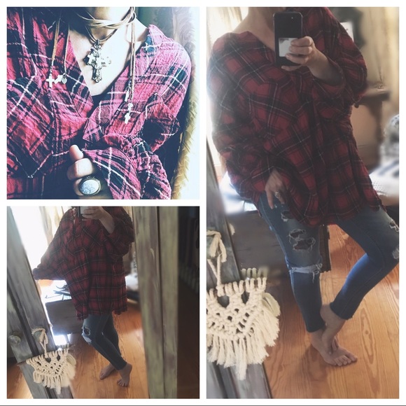I have a passion for altering & up cycling.pieces created using gently upcycled wares&materials&comes with hangtags .Irregularities add to the uniqueness of the vintage ware&sold as is.Oversized, slouchy& oh-so comfy,plaid tunic is perfect for lounging or throwing on with a pair of ripped jeans.or one of free peoples Good Karma Onesie. Front bust pockets& Raw hem 99% cotton 1%Spandex.The v-neck on these I altered too perfection.Now shirts stay in place.Other wise would fall off down the back.NWOT A = Red B= White C= Green