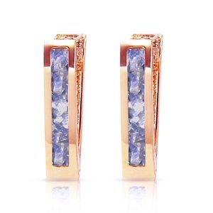 14K. SOLID GOLD HUGGIE HOOP EARRING WITH TANZANITES (Rose Gold)
