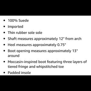 -Three tiers of fringe cover the tall shaft of a 100% suede boot with whipstitch detail.