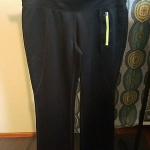 Comfy. Bot listed as petite, but are shorter. 36" waist to ankle, 28" inseam to ankle. Have zipper pocket for money, keys, small phone or mp3. Some pilling of material at edge of legs. See picture. Gently worn. #fila