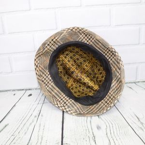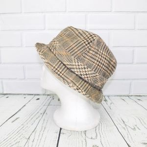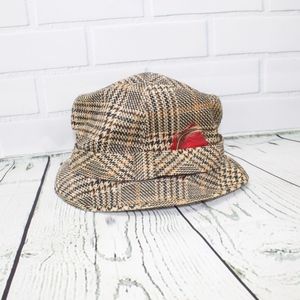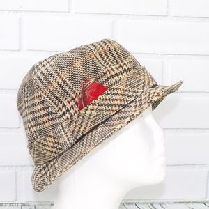 Vintage Plaid Fedora Bucket Hat Red Feather
