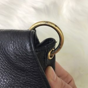 Tahari Black Leather Gold Buckle Shoulder Bag