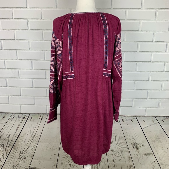 Features: FREE PEOPLE All My Life Boho Mini Dress; embroidered; pull on closure; empire waist; long sleeves; high-low hemline