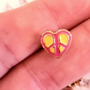 LAUREN G ADAMS heart peace stud enamel earrings. Super adorable, never worn. Perfect for teen or little girl. Pink and yellow peace. Rhodium plated, nickel and lead free.