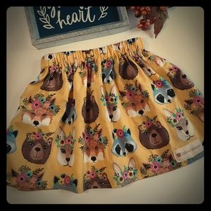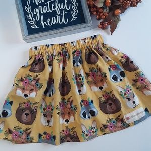 Handmade New Aline Skirt made with quality fabric and non roll elastic waist for extended wear! Perfect for little ones year round wardrobe. Layer with leggings and pair with a sweater in colder months. Adorable and whimsical woodland animal print. Custom sizes available, Listing is for skirt only. Matching accesories not included but available.