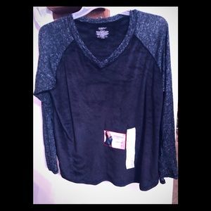 Super-soft, velour, stretchy, sweater knit combo. V-neck, high-low hemline. Unsurpassed comfort. Mix and match with different Cuddl Duds bottoms.