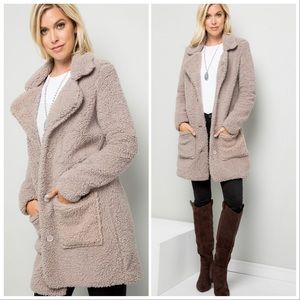 These are so soft and cozy, button front, pockets, Sherpa coat, jacket.