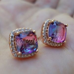 Rose Gold Purple Rainbow Diamond Halo Earrings