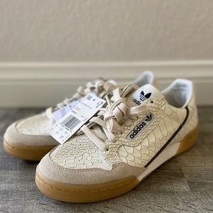 They are an authentic indoor trainer from the '80s. These shoes feature a distinctive split cupsole and retro-style details. They're made of snakeskin leather for a luxurious feel. I am so in love with these! I have a pair of my own and never have them off my feet. They honestly make any outfit look cool, whether its jeans and a t-shirt or a super cute dress.