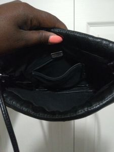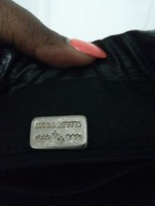 Moda Attiva Women's Crossbody Leather Back Drawstring Studded Black Small. Condition is Pre-owned. Shipped with USPS Priority Mail.