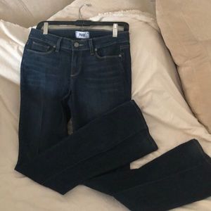 Dark denim Paige straight leg with slight flare.