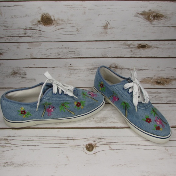 Denim Sneakers Embroidered Flamingos Palm Trees 8 Sebastino Casual Shoes