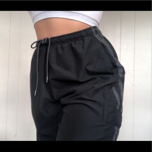 Vintage Nike sweatpants feature a tight ankle with elastic on the bottom, in good condition feature a draw string to accommodate different sizes and body types originally a men’s size xxl modeled on women’s size L drawstring makes them very versatile any questions feel free to ask will fit sizes M-XL