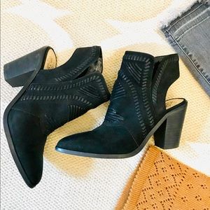 Vince Camuto Black leather western cut out booties