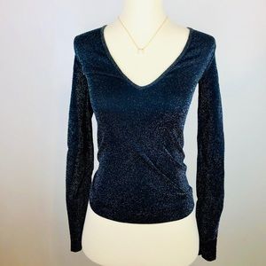This black metallic flecked top is super stretchy. Perfect for the holidays or any other special occasion. Size XS/S.