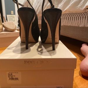 Jimmy Choo Glitter Black pumps! Size 38.5. Great condition. Strap back and cut out toe. Worn a handful of times, amazing shoes looking for a good home!