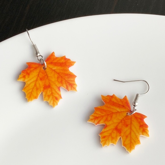 NEW Acrylic Orange Leaf Earrings