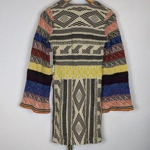 Beautiful patchwork sweaters dress is perfect for upcoming fall season with vibrant colors matching belt with eloquent bell sleeves