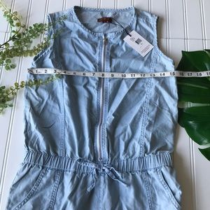 This blue chambray like kids 7 for all mankind romper is perfect for a quick chic summer look. Zip I’m front design. Brand new with tags. Stretch waist and pockets. #H Blue romper kids 7 for all mankind