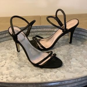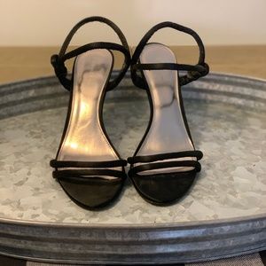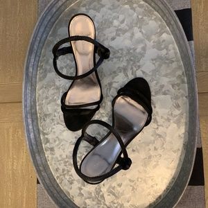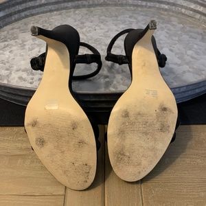 Calvin Klein Black Satin Heels Perfect For Wedding Season With Any Dress! Beautiful Satin Strappy Sandals, Wrap Around Ankle With An Asian Inspired Knot Detail At Ankle. Barely Worn. Pre-Owned. Wear Shown In Pictures