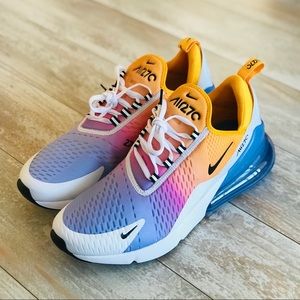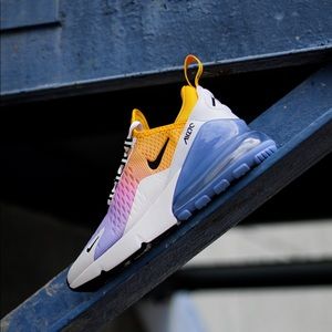 The Nike Air Max 270 Shoe is by two icons of big Air: the Air Max 180 and Air Max 93. It features Nike's biggest heel Air unit yet for a super-soft ride that feels as impossible as it looks. The shoe's bootie construction feels snug and flexes with your foot. It's made with solid and mesh areas, giving you structure and ventilation where you need them most.
