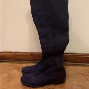 Navy suede thigh boots size 8! Has stretchable material in the back for if you calves/legs happen to be wider.