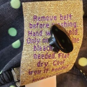 Tag Size 5 Junior Fit/ Can Fit Ladies Small Black & Lime Green Polka Dot Short Pleated Belted Dress