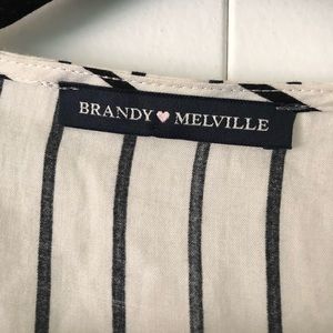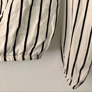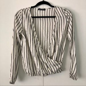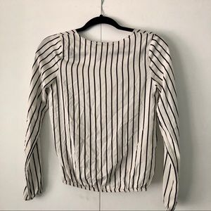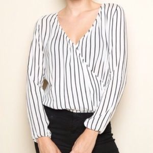 Brandy Melville Zosia Top. Long sleeve Drape Front. White with black stripes. Elastic band sleeves and waist. Cross surplice v neck. In good condition.