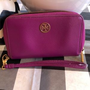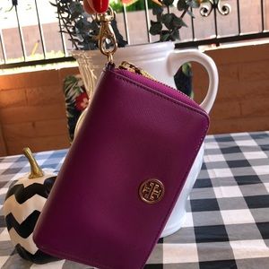 Tory Burch purple wristlet wallet
