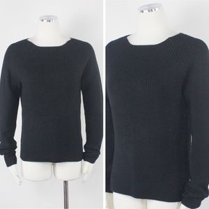 Everlane Women’s Sweater Wool Oversized Black Chunky Knit Ballet Neck Long Raglan Sleeves Side Splits Hips Length